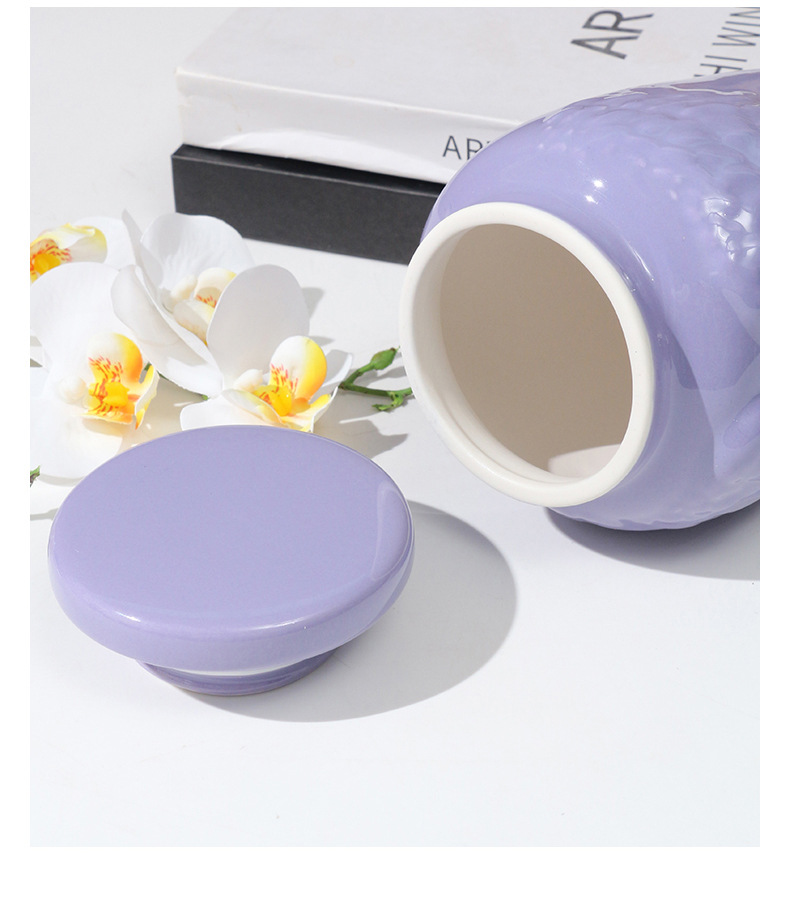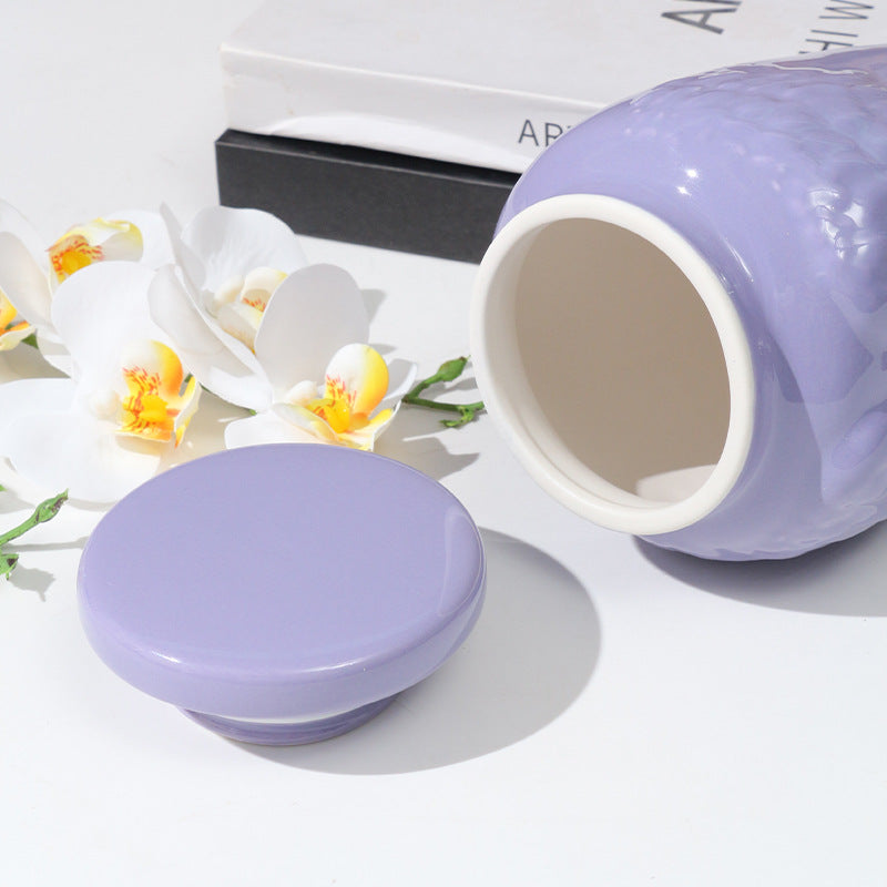 Crafted from ceramic with a sealed lid, this urn helps protect ashes from moisture while serving as a peaceful and meaningful memorial presence within the home.