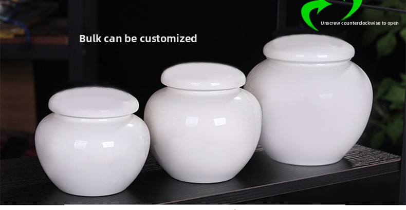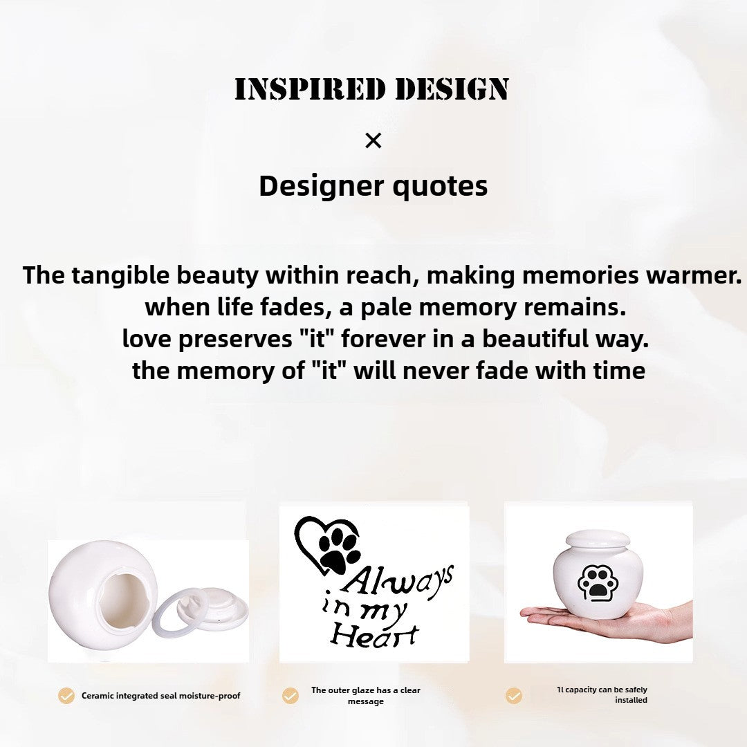 Crafted from ceramic and finished with a sealed lid, the urn helps protect ashes from moisture and is suitable for long‑term indoor memorial keeping.